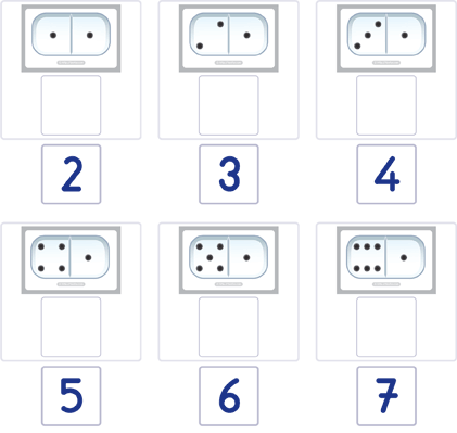 Le but de cette activité est de permettre à l’enfant de s’amuser en apprenant les nombres de 2 à 12. Il doit se servir de deux sets de cartes dont l’un possède des dominos sur lesquels il faut dénombrer les constellations et le deuxième set constitué de chiffres de 2 à 12.